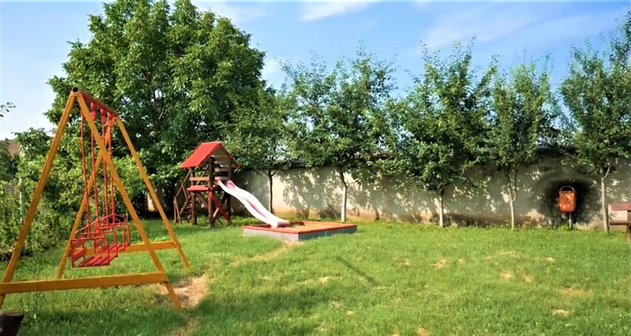 Grija față de locul de joacă nu este de ieri, de azi. De-a lungul vremii, Vasile Chioran a primit puieți de la prieteni, iar acum pomii, meri, peri și caiși, sunt plini de roade.