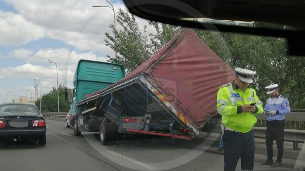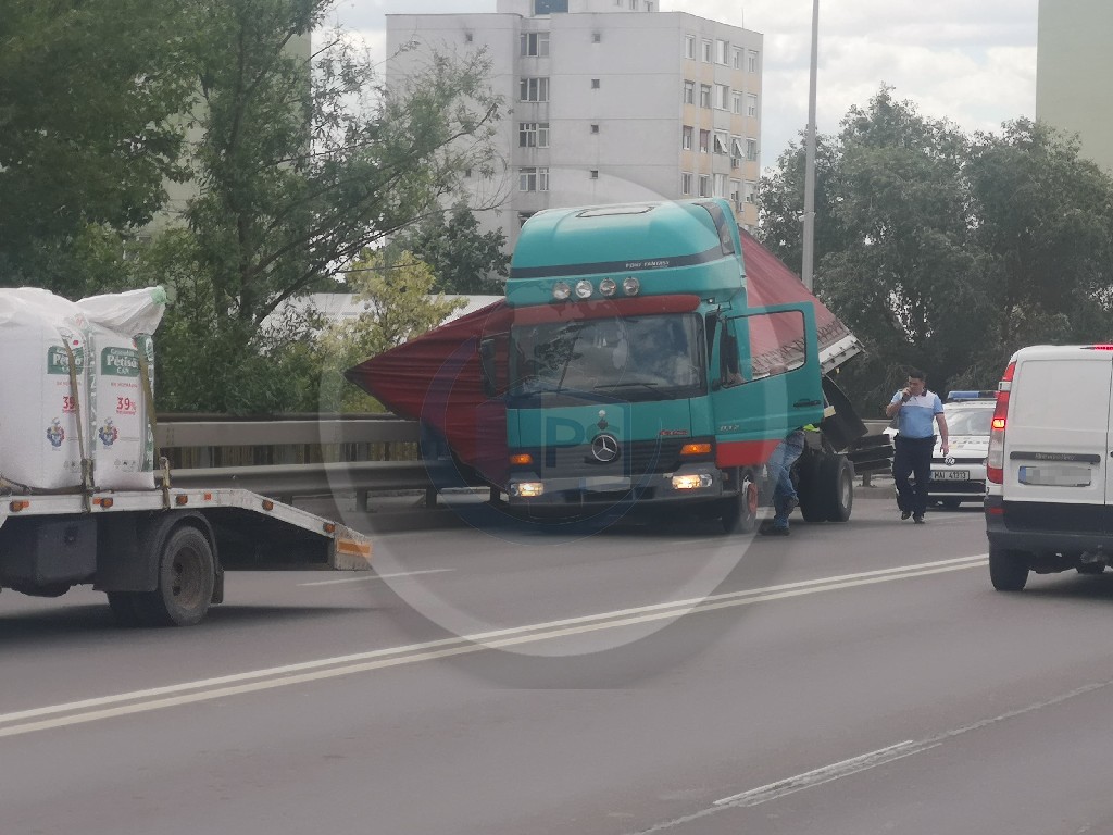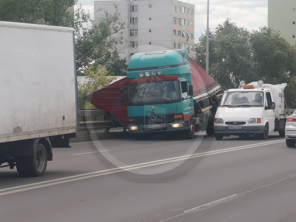 FOTO/VIDEO. Remorca unui camion, răsturnată pe Podul Decebal. Trafic restricționat!