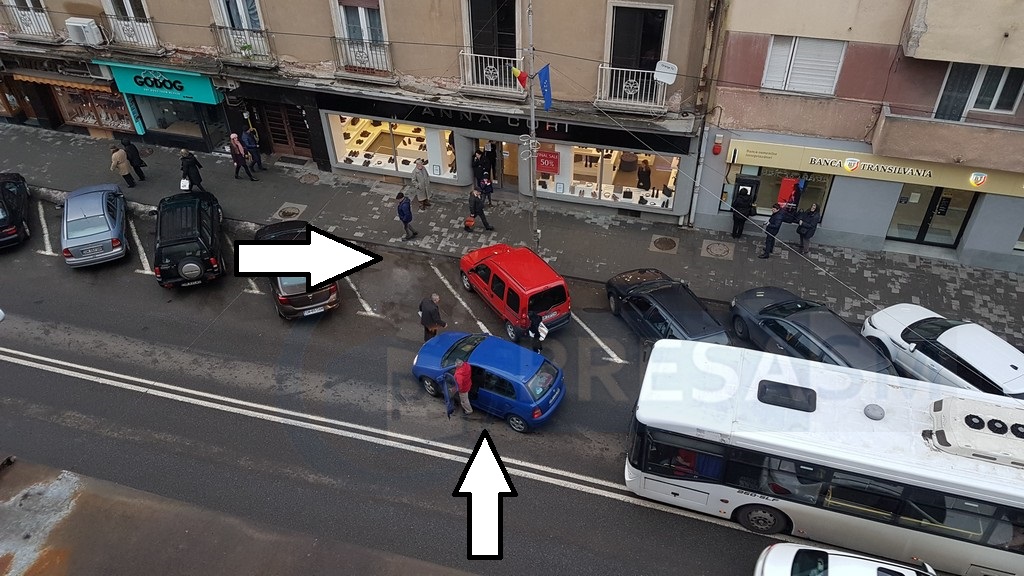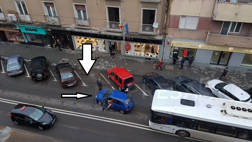 Așa că a rămas pe loc cu mașina, în plină stradă, așteptând ca cel care ”rezervase” locul să se retragă. Au urmat câteva minute de parlamentări, și toate acestea pe nervii celorlalți șoferi, care asistau umiți la întreaga scenă.
