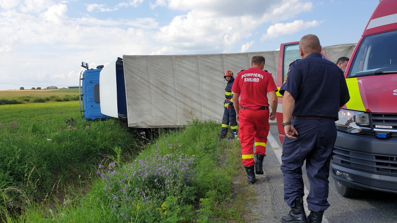 După evaluarea stării de sănătate a șoferului şi acordarea primelor îngrijiri medicale la faţa locului, acesta a refuzat transportul la Unitatea de Primiri Urgenţe.