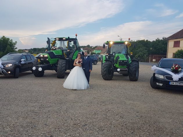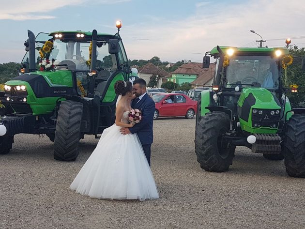 Mirel, un agronom convins, a crezut de cuviință să o aducă pe mireasă cu tractorul. Ca și simbol al ocupației sale de bază.