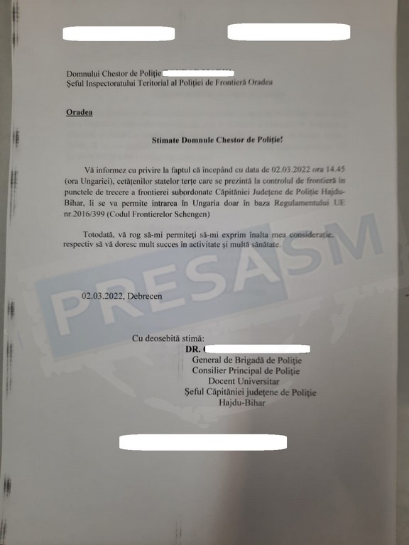 Conform informațiilor PresaSM, informarea a fost transmisă astăzi, la ora 14.45, de către Poliția de Frontieră română de către Căpitănia Județeană de Poliție Hajdu-Bihar.