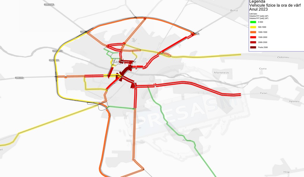 Dezvoltarea accentuată a municipiului Satu Mare și a localităților limitrofe pe parte economică a dus la creșterea fluxurilor de trafic de pe rază municipiului Satu Mare, în special pe arterele de penetrație și cele 2 poduri de traversare a râului Someș. Totuși, la oră de vârf singură arteră depășită este Podul Decebal, celelalte artere aglomerate încadrându-se până la 92% procent al raportului debit/capacitate.