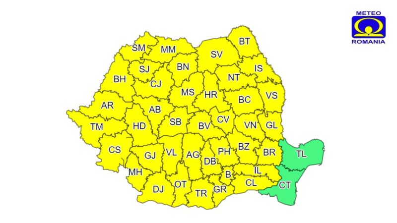 Codul galben este valabil pentru intervalul 27 aprilie, ora 12 - 28 aprilie, ora 23. Meteorologii avertizează că ne vom confrunta cu instabilitate atmosferică temporar accentuată și cantități însemnate de apă.