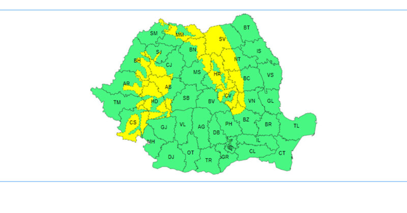 Potrivit meteorologilor, în intervalul menționat, vor fi precipitații moderate cantitativ în Carpații Occidentali, vestul Carpaților Meridionali și în nordul Carpaților Orientali, în județele Satu Mare, Maramureș, Bistrița-Năsăud și Mureș.