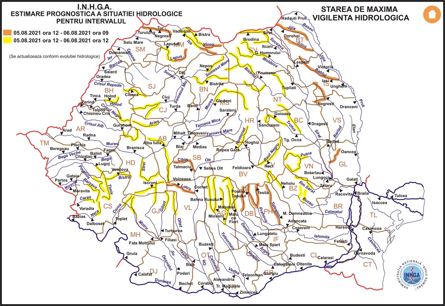 În intervalul 05.08.2021 ora 12:00 – 06.08.2021 ora 09:00, pe râurile din bazinele hidrografice: Vișeu, Iza, Lăpuş - bazinul superior şi pe afluenți din bazinul mijlociu şi inferior (judeţul Maramureș); Tur (judeţul Satu Mare), va fi valabilă o avertizare Cod portocaliu.