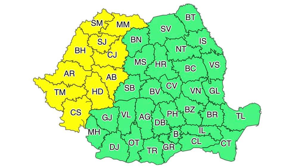 "În intervalul menționat, îndeosebi în cursul nopții de vineri spre sâmbătă (9/10 iulie) și în a doua parte a zilei de sâmbătă (10 iulie), în Banat, Crișana, Maramureș și în vestul Transilvaniei vor fi perioade cu instabilitate atmosferică accentuată, ce se va manifesta prin vijelii, averse torențiale, descărcări electrice și izolat grindină. În intervale scurte de timp sau prin acumulare, cantitățile de apă vor depăși 20...40 l/mp", avertizează cei de la ANM.