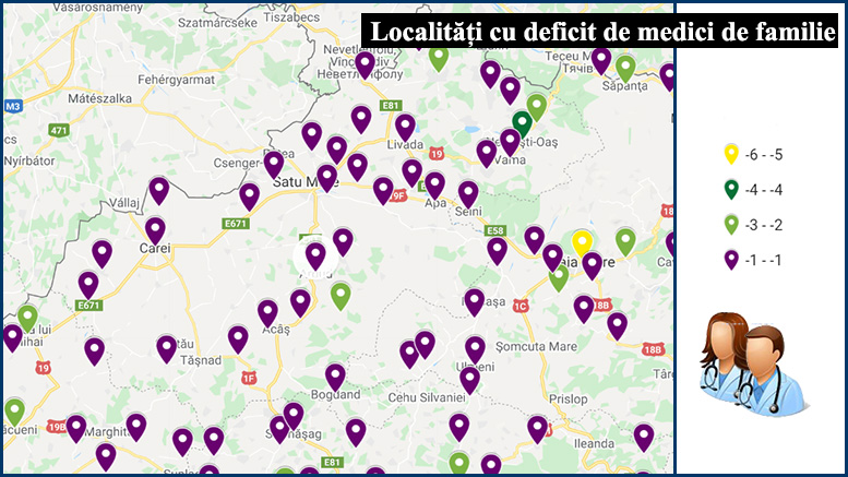 Probleme și mai mari sunt atunci când vorbim de localități, 40 la număr, care au un deficit de medici de familie. În orașul Negrești-Oaș, care figurează pe lista celor de la FNPMF, ar fi nevoie de un număr de 9 medici de familie, dar în registre apar doar cinci. Situația se repetă și când vorbim de orașul Ardud sau municipiul Carei, ambele cu un deficit de cel puțin un medic de familie.