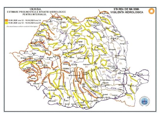 Hidrologii avertizează că pot avea loc curgeri importante pe versanţi, torenţi şi pâraie, viituri rapide pe râurile mici cu posibile efecte de inundaţii locale şi creşteri de debite, cu posibile depăşiri ale cotelor de atenție.