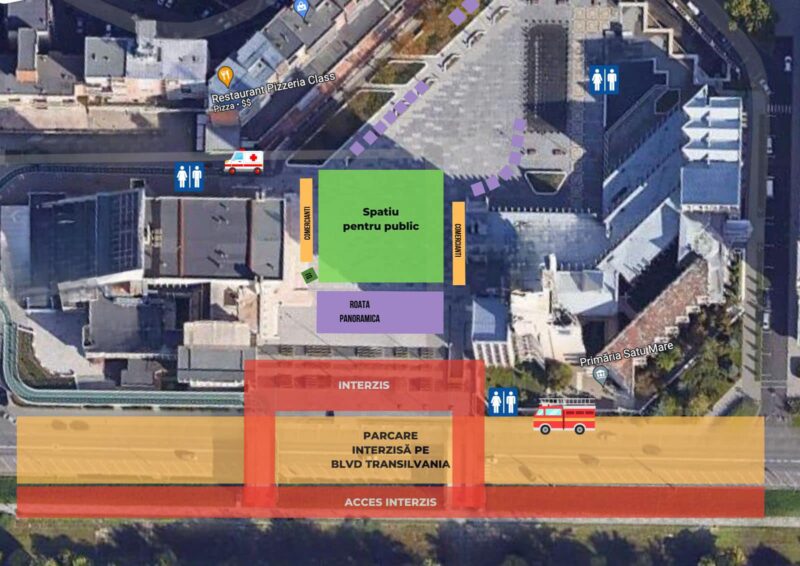 "Stimați sătmăreni, pentru buna organizare a Revelionului în aer liber, vă informăm că din 31 decembrie, ora 07.00, până în 1 ianuarie la ora 02.00, parcarea pe Bulevardul Transilvania este interzisă. În timpul focurilor de artificii, accesul pe dig, pe cele două pasarele, în zonele marcate cu roșu, este interzis. În noaptea dintre ani se vor afla alături de noi si forțele de ordine pentru a se asigura de comportamentul adecvat al celor prezenți. Este interzisă folosirea de petarde și spargerea sticlelor! Vă mulțumim pentru înțelegere și vă așteptăm la Revelionul în aer liber!", transmit cei de la Primăria Satu Mare.
