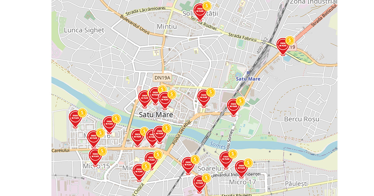 În municipiul Satu Mare sunt 21 stații de plată, atât în zona centrală, cât și în cartierele municipiului Satu Mare. Locațiile sunt următoarele: