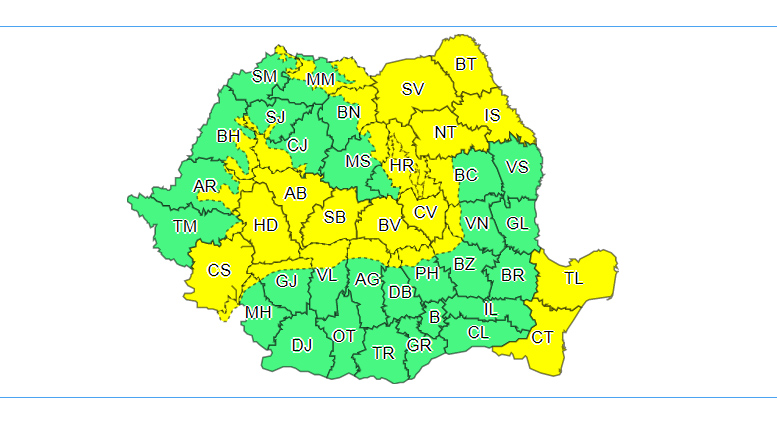Administrația Națională de Meteorologie a emis în această dimineață un Cod galben de precipitații valabil și pentru regiunea de nord-vest a țării.