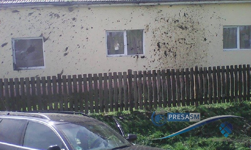 Având în vedere că suntem în a doua zi de Paște, probabil că cele două părți au ajuns la o înțelegere amiabilă. Din nefericire, o casă din apropiere a fost stropită toată cu noroi. Probabil că șoferul vinovat va suporta și cheltuielile de curățire a imobilului.
