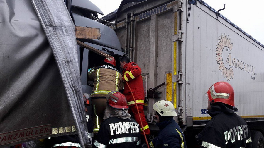 Impact între două TIR-uri. O sătmăreancă a ajuns la Urgențe (FOTO&VIDEO)