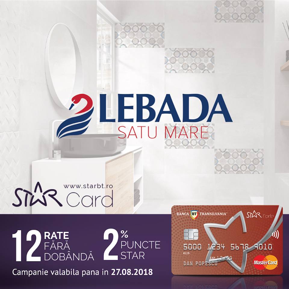 Acum la magazinele Lebăda Satu Mare poți să îți achiziționezi produsele dorite cu Cardurile STAR de la Banca Transilvania. Cu aceste carduri STAR de la Banca Transilvania poți plăti în 12 rate fără dobândă în magazinele Lebăda din Satu Mare și Carei. Ai posibilitatea să îți cumperi produsele de amenajare interioară sau exterioară în rate cu ajutorul cardurilor STAR de la Banca Transilvania.