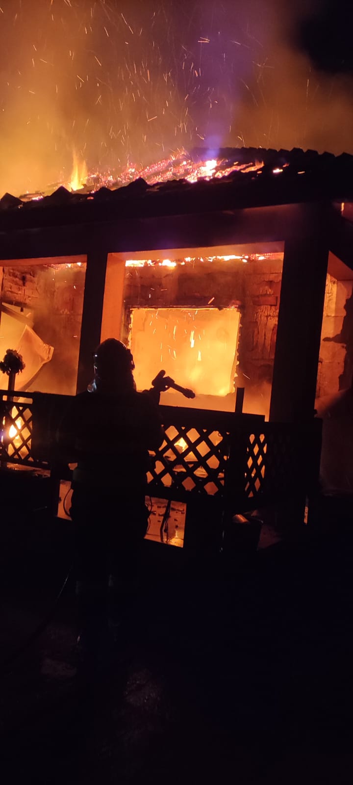 ACTUALIZARE 00.05: Forțele ajunse la locul intervenției au constatat că incendiul se manifestă generalizat. În sprijin se deplasează încă o autospecială de stingere cu apă și spumă.