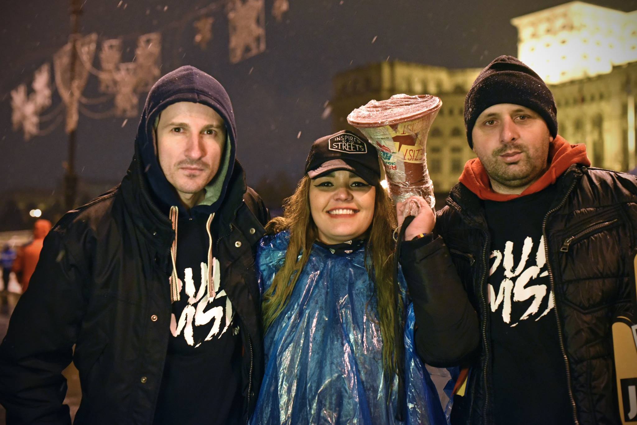 Darius și Mihai (Arma): Am fost prezenți și la protestul din Satu Mare, cel din ianuarie anul trecut, când au ieșit 600.000 oameni în stradă în toată țara. De 27 de ani se învârt în conducerea țării aceleași personaje dubioase. Efectul este unul dezastruos, dacă ne gândim doar la tineretul care părăsește masiv România. România are nevoie de un moment 0, și unde un loc mai potrivit de început decat în Piațata Universității, kilometrul 0?