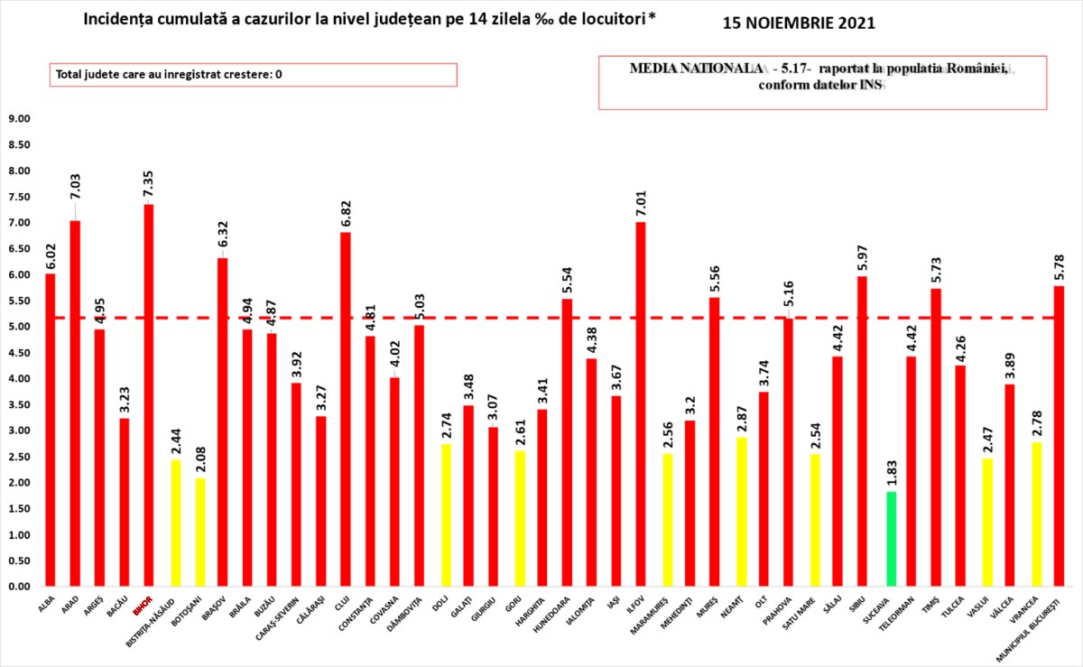 În topul incidențelor ridicate se află și Braşov, Alba, Bucureşti, Sibiu, Timiş şi Mureş.