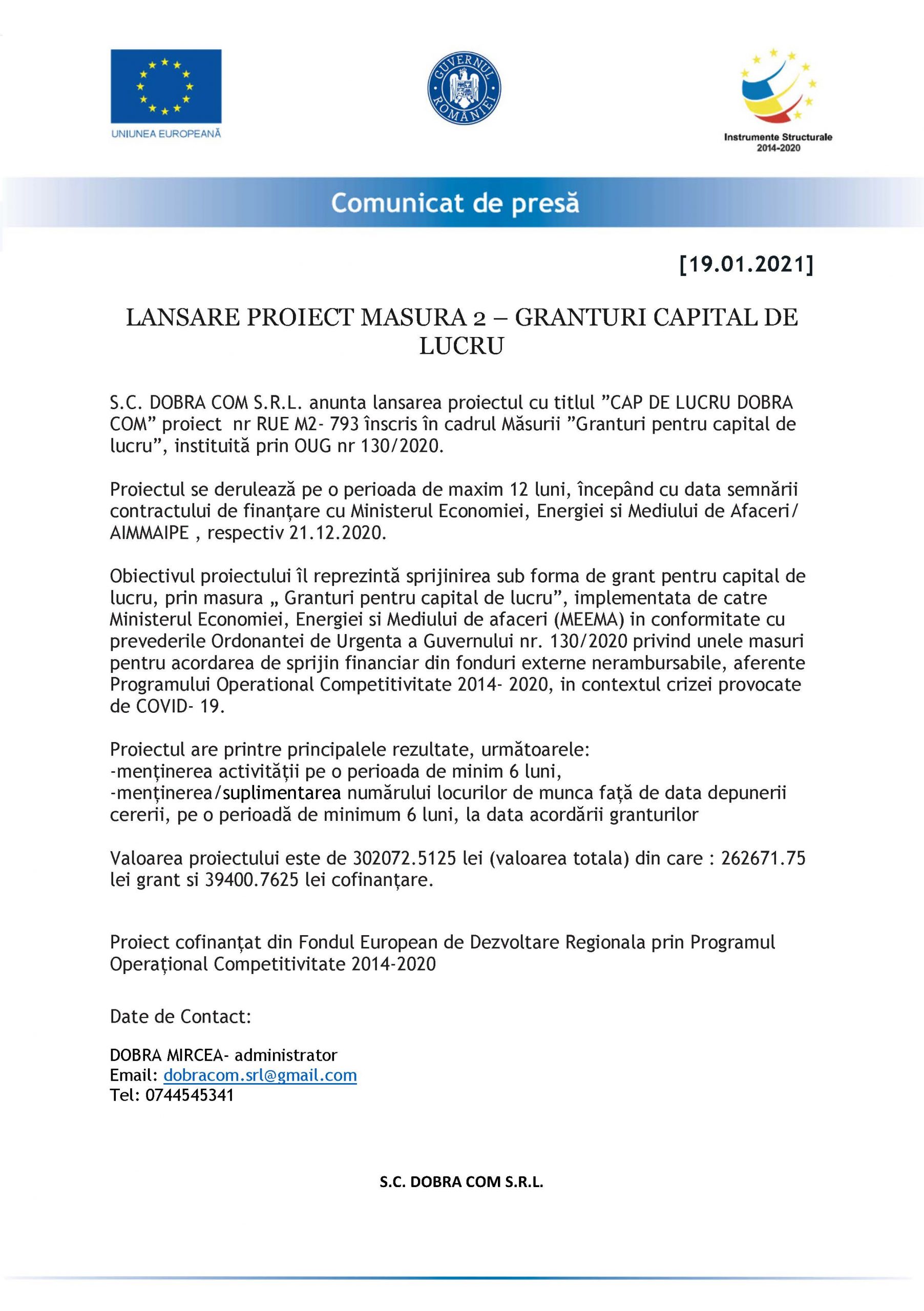 Lansare proiect SC Dobra Com SRL Satu Mare