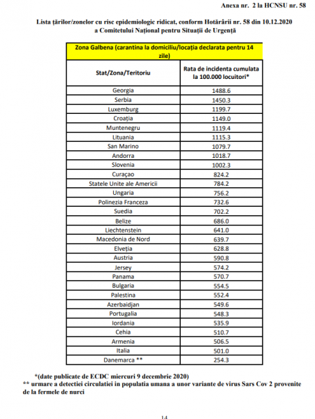 CNSU a aprobat în această seară lista actualizată cu țările aflate în zona galbenă, cele pentru care se impune carantină la revenirea în țară.