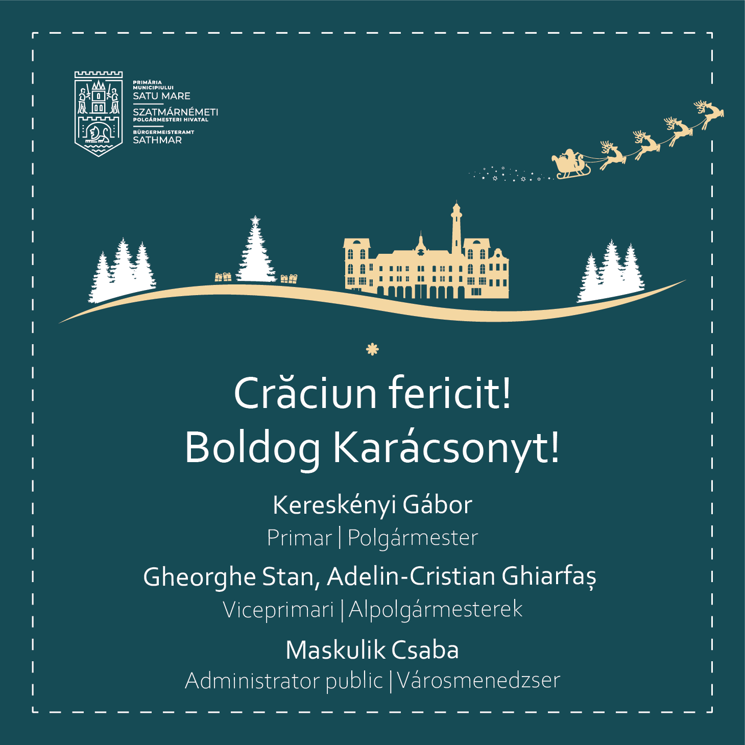 Conducerea Primăriei Satu Mare, prin primarul Kereskenyi Gabor, viceprimarii Gheorghe Stan și Adelin Ghiarfaș, alături de administratorul public Maskulik Csaba, le transmit gânduri bune tuturor sătmărenilor care sărbătoresc Crăciunul.