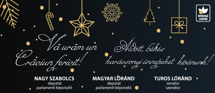 Mesajul de Crăciun al deputatului Magyar Lorand, al deputatului Nagy Szabolcs și al senatorului Turos Lorand: ”Fie ca sărbătorile de iarnă să vă aducă bucuria Crăciunului prin speranţă, spiritul Crăciunului prin pace, emoţia Crăciunului prin dragoste”