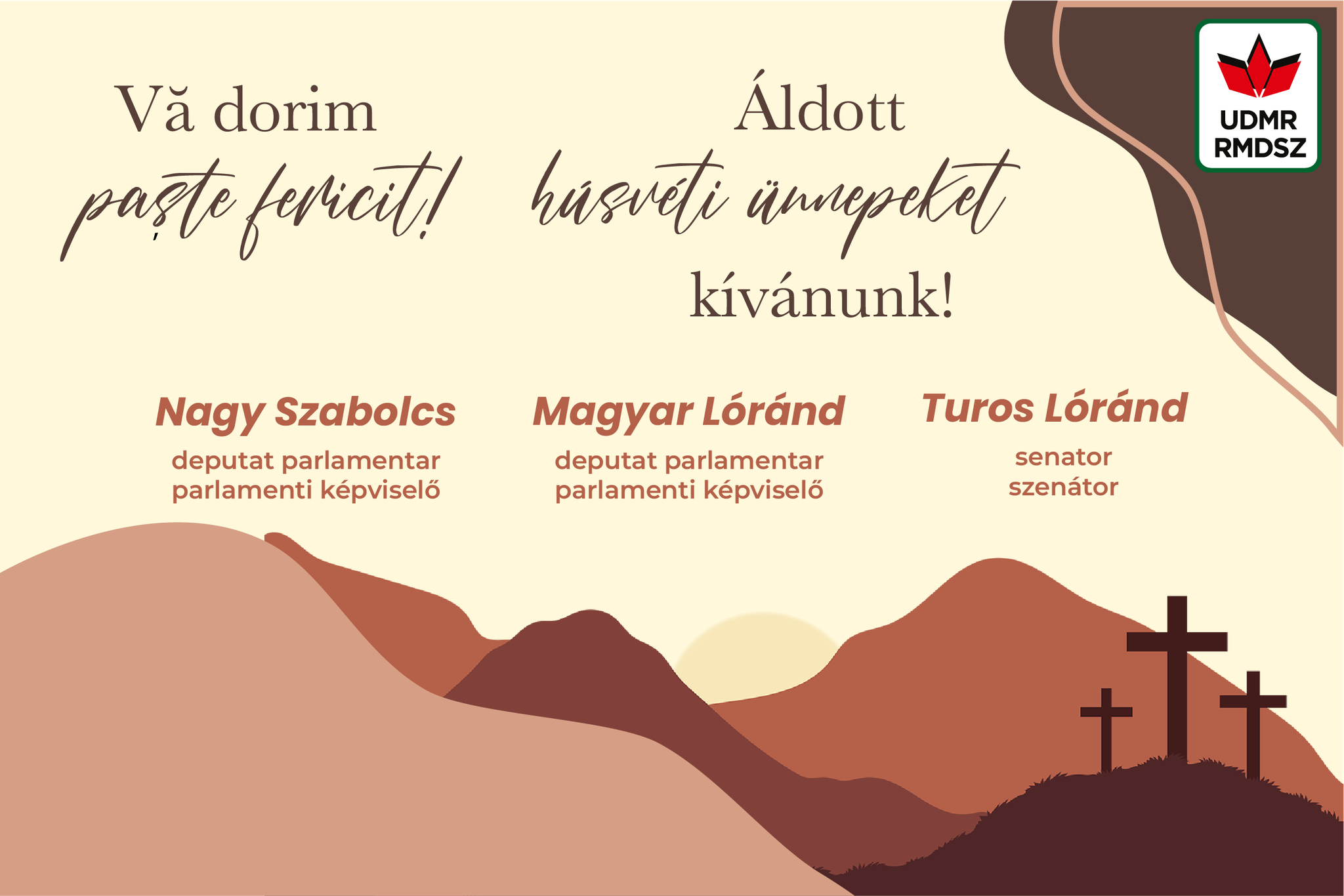 Deputații Magyar Lorand și Nagy Szabolcs, alături de senatorul Turos Lorand, le transmit gânduri bune tuturor creștinilor care sărbătoresc în aceste zile Sfintele Paști.
