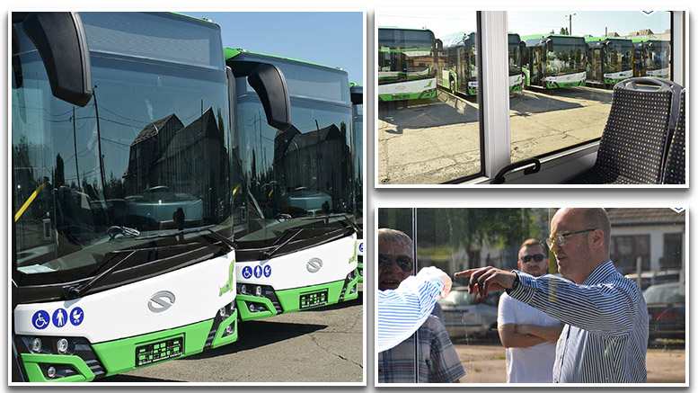 „Hétfőn újabb 7 Solaris Urbino hibrid autóbusz érkezett Lengyelországból. Uniós forrásokból fejlesztjük a közösségi közlekedést! Miután 2006-tól 2019-ig egyetlen darab új autóbuszt sem vásárolt, az önkormányzat tavaly 5 diesel, az idén pedig 17 hibrid autóbusszal bővítette a közösségi közlekedésért felelős vállalat gépparkját.