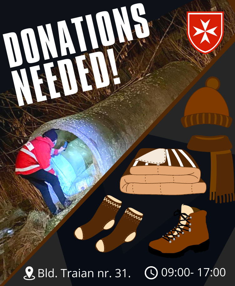 "Strângem şepci, eșarfe, pături călduroase și pantofi de iarnă pentru bărbați (min. 42 și mărimi mai mari). Vă rugăm, dacă aveți un asemenea articol acasă care nu vă mai este necesar, dar încă este în stare bună, adu-l la noi. Am avea mare nevoie de ele în cadrul programului nostru prin care ajutăm persoanele fără adăpost! Haideți să ajutăm împreună!", se arată în apelul lansat pe pagina de socializare a ONG-ului.
