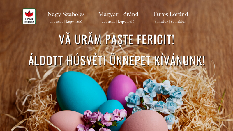 Deputații Magyar Lorand și Nagy Szabolcs, alături de senatorul Turos Lorand, le transmit gânduri bune tuturor creștinilor care sărbătoresc în aceste zile Sfintele Paști.