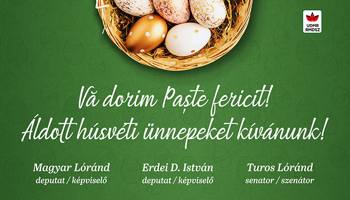 Deputații Magyar Lorand și Erdei D. Istvan, alături de senatorul Turos Lorand, le transmit gânduri bune tuturor creștinilor care sărbătoresc în aceste zile Sfintele Paști.