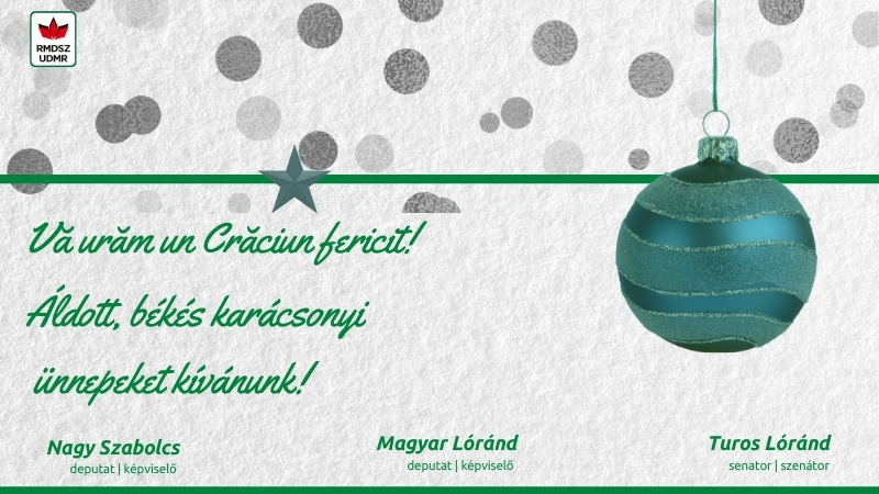 Mesajul de Crăciun al deputatului Magyar Lorand, al deputatului Nagy Szabolcs și al senatorului Turos Lorand: ”Fie ca sărbătorile de iarnă să vă aducă bucuria Crăciunului prin speranţă, spiritul Crăci...