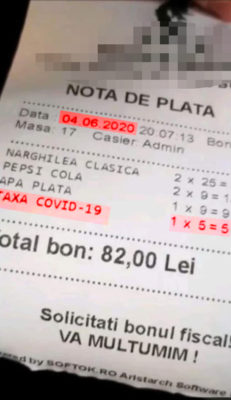 Potrivit Digi24, taxa de COVID-19 este calculată în funcţie de câte persoane au comandat pe bonul fiscal, astfel dacă ieşi cu un grup de prieteni la terasă, fiecare din voi veţi plăti acest adaos.