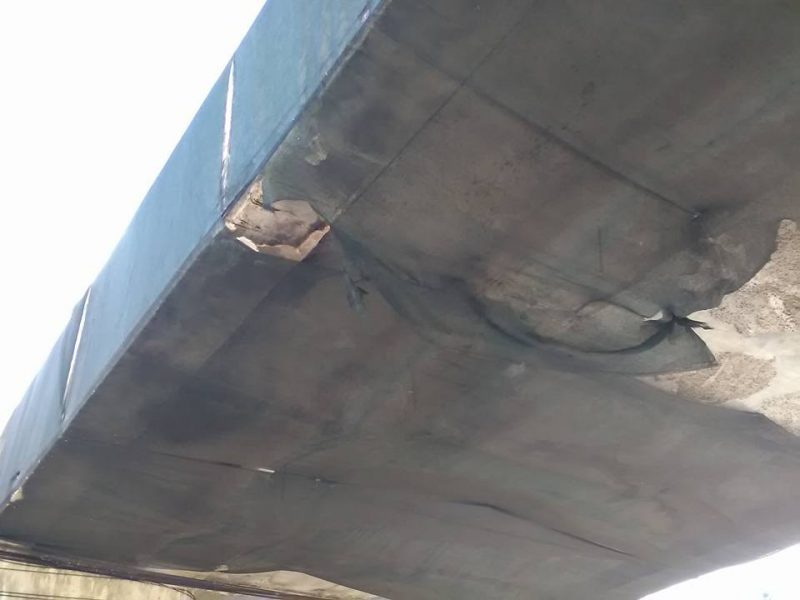 Pericol public pentru mașinile și pietonii care tranzitează Bulevardul Transilvania, chiar lângă Palatul Administrativ. Sătmăreanul Alexandru Cosma a suprins cum tencuiala se desprinde de pe pasarela care face legătura între Piața 25 Octombrie și digul Someșului.