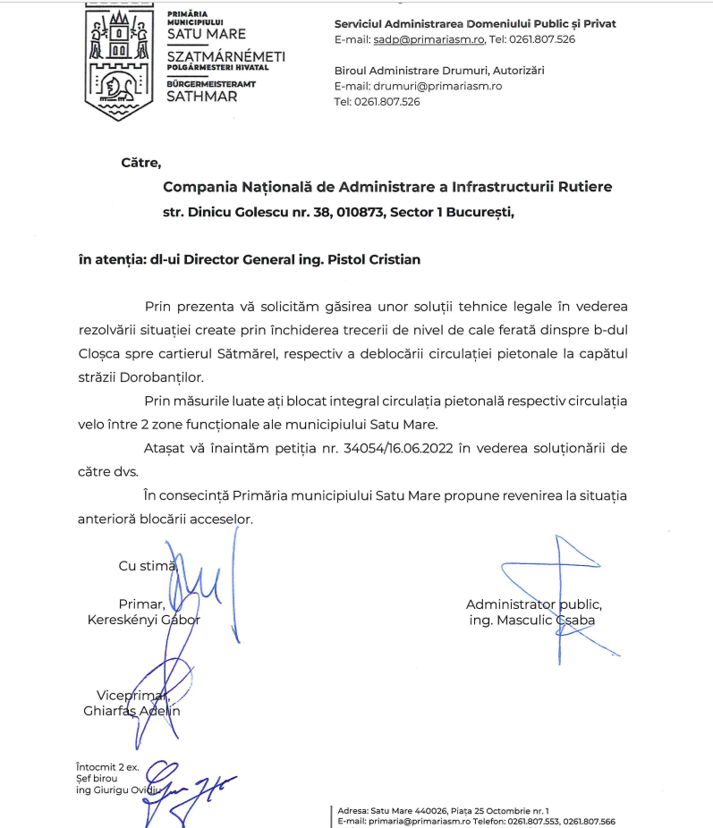 Trebuie precizat că CNAIR nu a consultat Primăria și Comisia de Circulație atunci când a blocat accesul spre Sătmărel, iar reprezentanții municipalității nu au fost invitați să participe la recepția de la terminarea lucrărilor.