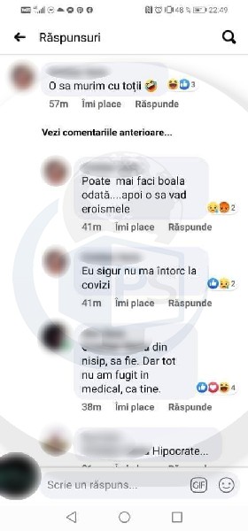 Afirmația că nu se va întoarce la “covizi” i-a indignat pe o parte din sătmărenii care au urmărit schimbul de replici dintre cei doi medici. Practic, public, medicul își declară refuzul de a trata pacienții aflați în suferință, iar unii internauți au subliniat că această fugă de răspundere este motivul pentru care sistemul medical din Carei nici înainte nu venea în sprijinul pacienților.