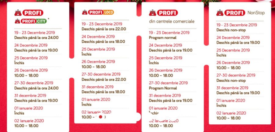 31 decembrie – deschis până la ora 19:00