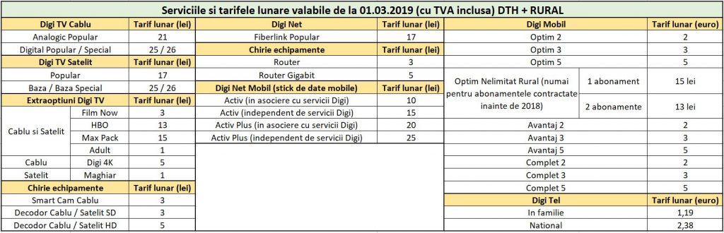 Digi | RCS & RDS a anunțat, printr-un comunicat de presă, că este nevoită să majoreze prețul abonamentelor la serviciile de internet și televiziune digitală și analogică începând cu 1 martie 2019.