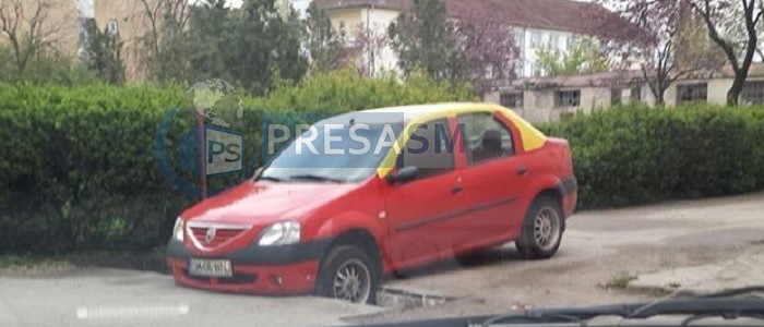 Totul s-a întâmplat în această săptămână pe Bulevardul Cloșca din municipiul reședință de județ. Din imagini reiese că șoferul taximetrului a încercat să iasă pe drumul principal, dar nu a observat un șanț săpat de muncitorii unei firme, pentru a racorda o clădire la sistemul de canalizare al orașului.