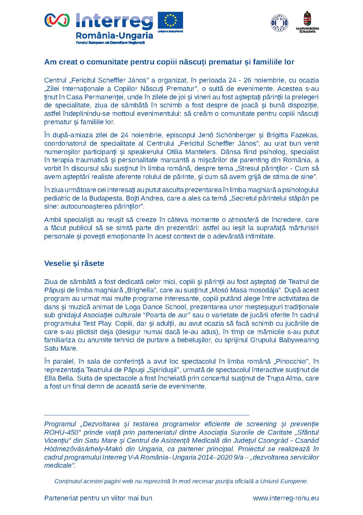 SATU MARE. A fost creată o comunitate pentru copii născuți prematur și pentru familiile lor