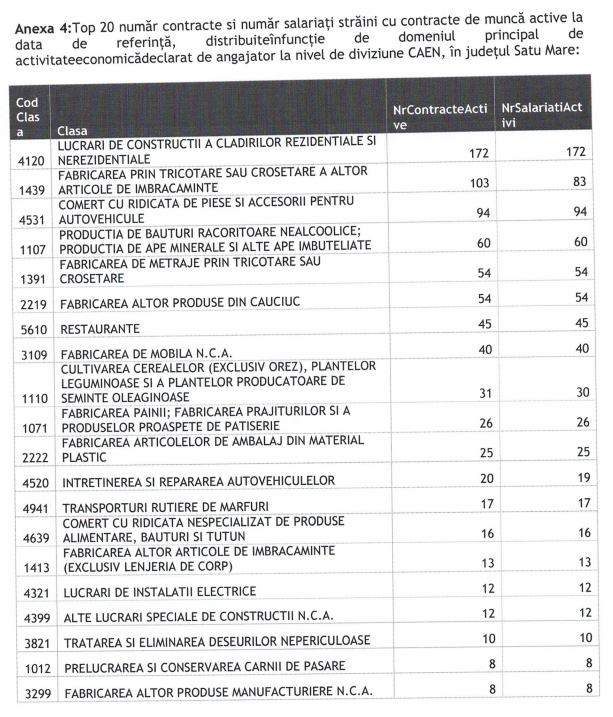 Inspectoratul Teritorial de Muncă spune că 172 de cetățeni străini sunt angajați în construcții, în timp ce peste 90 sunt angajați la firme care au ca obiect de activitate comerțul cu ridicata de piese și accesorii auto.