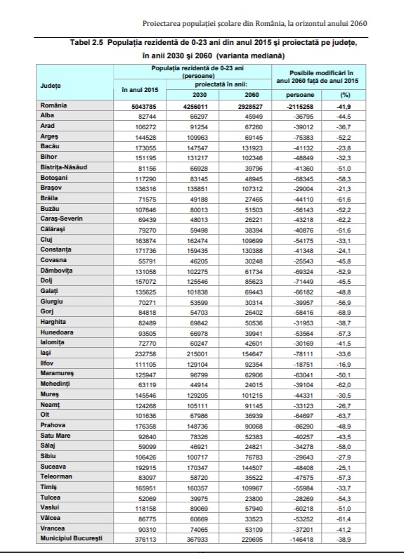 Un județ cu tot mai puțin școlari și tineri, cam așa arată proiecțiile INS pentru Satu Mare. Potrivit proiecției pentru 2060, județul Satu Mare va rămâne fără peste 40.000 de școlari și tineri cu vârsta de până în 23 de ani. Scăderea, față de anul de referință 2015, este de 43,5 procente.