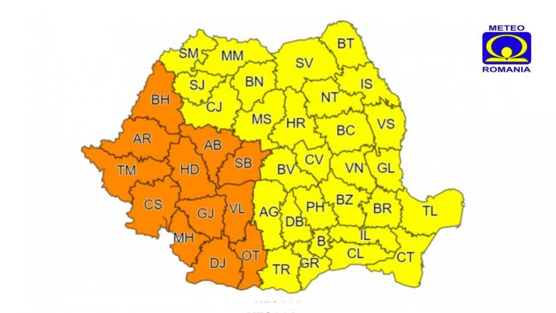 UPDATE 14:00 ANM a emis avertizări Cod roșu de fenomene imediate pentru mai multe localități din județele Cluj, Hunedoara și Sibiu.
