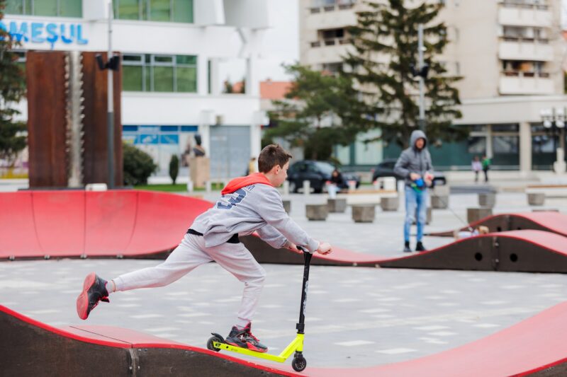 Un punct de selfie cu o poartă plină cu flori se află chiar la intrarea pe platoul 25 Octombrie, iar cei mici se pot distra pe pista pumptrack amenajată tot pe platou.