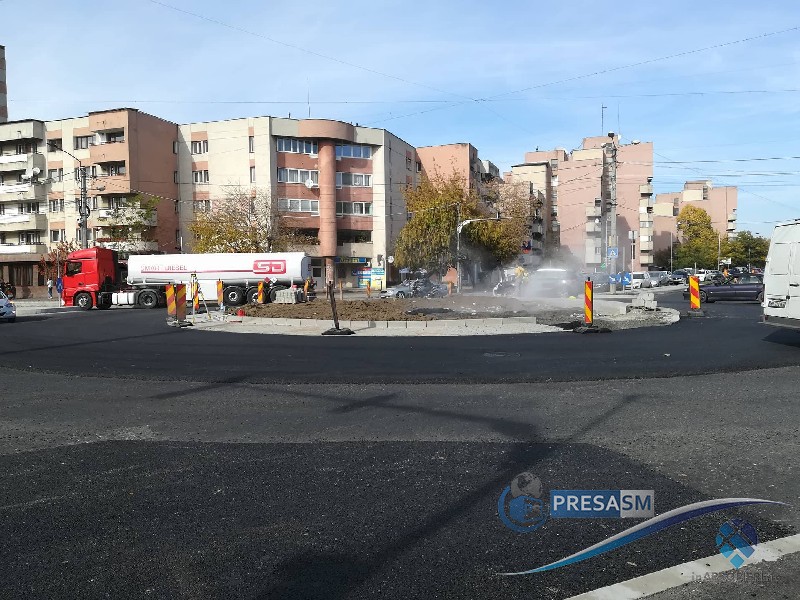 Firma care se ocupă de amenajarea sensului giratoriu din intersecția străzii Prahovei, Drumul Careiului și coborârea de pe Podul Golescu a avansat cu lucrările, devansând chiar și calendarul prezentat conducerii Primăriei Satu Mare. Deși lucrările de amenjarare a centrului sensului giratoriu sunt finalizate, în prezent finalizându-se lucrările de asfaltare.