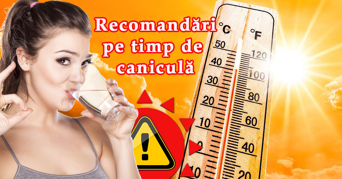 Hidratați-vă corespunzător, beți zilnic minimum 2 litri de lichide, fără a aștepta senzația de sete. În zilele caniculare se recomandă consumul unui pahar de apă (sau echivalentul acestuia) la fiecare 15-20 de minute;