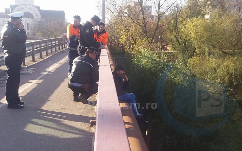 ”Sinucigașul” șef al Sătmarului continuă să pună pe drumuri pompierii, jandarmii și polițiștii. Azi, în jurul orei 14.00, Mircea Oros, în vârstă de 49 de ani, a încercat din nou să se ”arunce” de pe Podul Golescu.