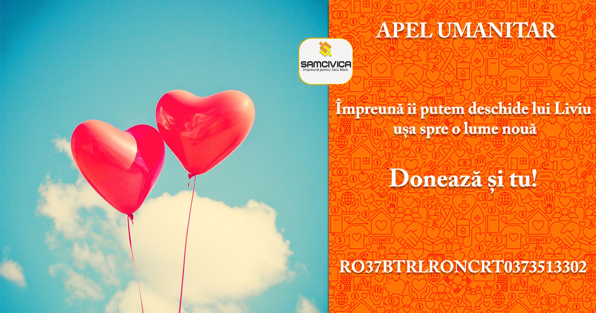"Suntem convinși că sătmăreni cu suflet mare ne vor ajuta în continuare să strângem și cei 5.000 de lei de care Liviu mai are nevoie pentru a cumpăra dispozitivele. Facem apel la sătmăreni și îi rugăm să vină alături de noi, astfel încât să-i putem deschide lui Liviu ușa spre o lume la care până acum nici nu a avut curajul să spere", spun cei de la SamCivica.