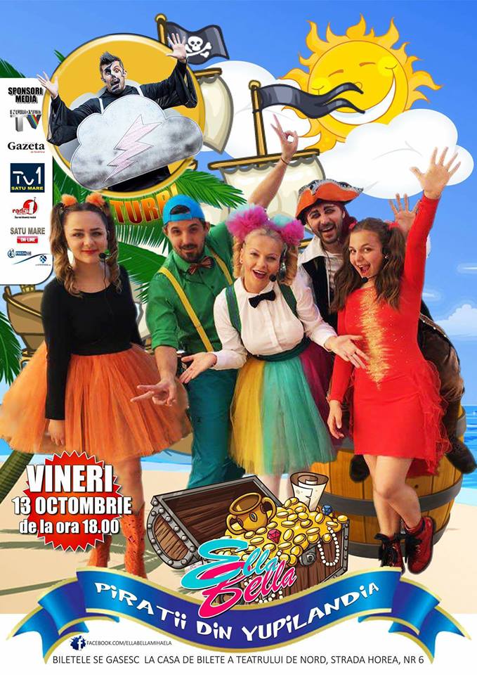 Ella Bella și pirații din Yupilandia invită toți copiii la un super spectacol care va avea loc la Casa de Cultură a Sindicatelor din municipiul Satu Mare, în data de 13 octombrie, de la ora 18.00.