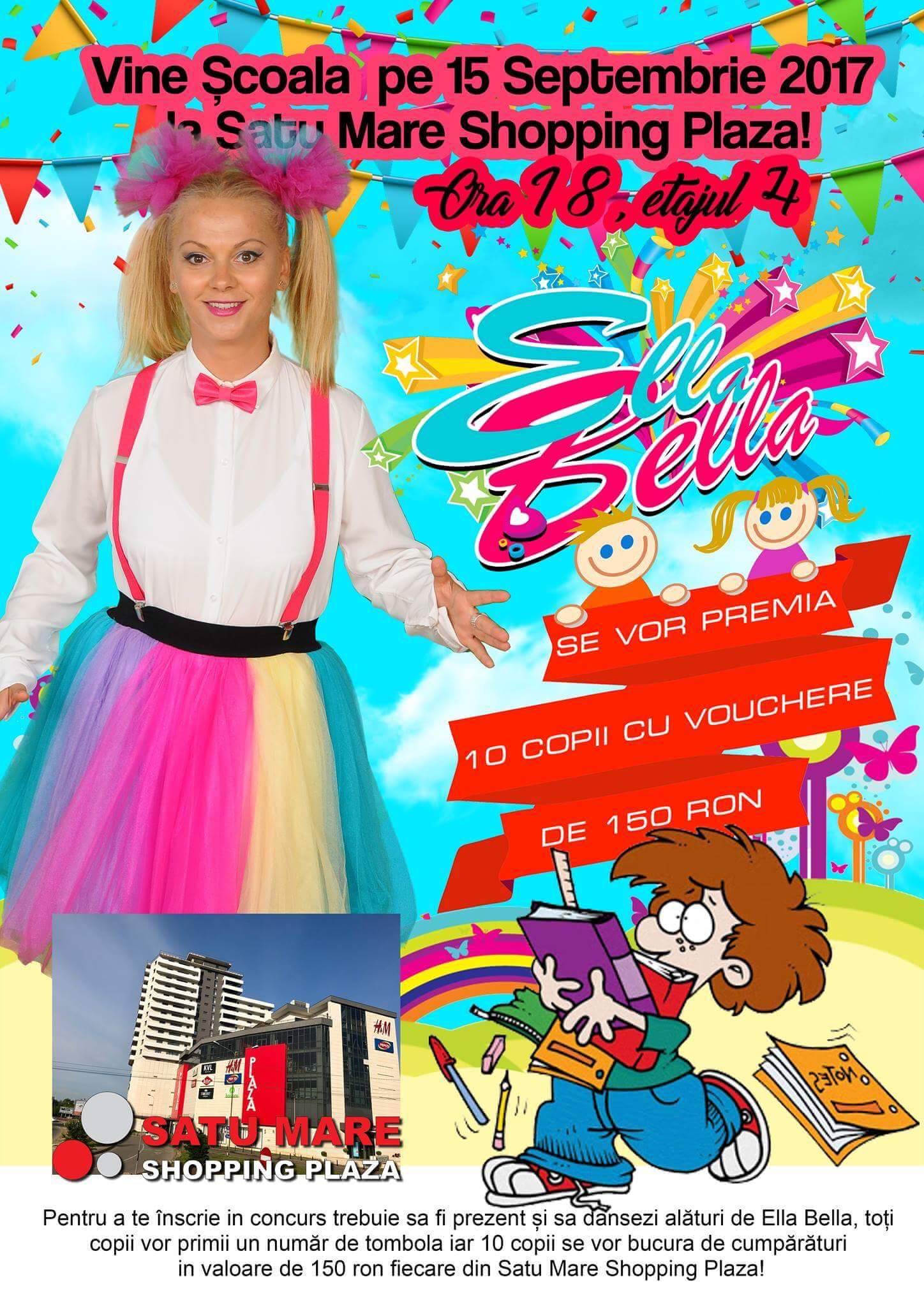 Vine Școala, pe 15 Septembrie 2017, la Satu Mare Shopping Plaza! Super Spectacol Ella Bella, începând de la ora 18:00. Se vor premia 10 copii cu vouchere în valoare de 150,00 de lei fiecare, pentru a ...